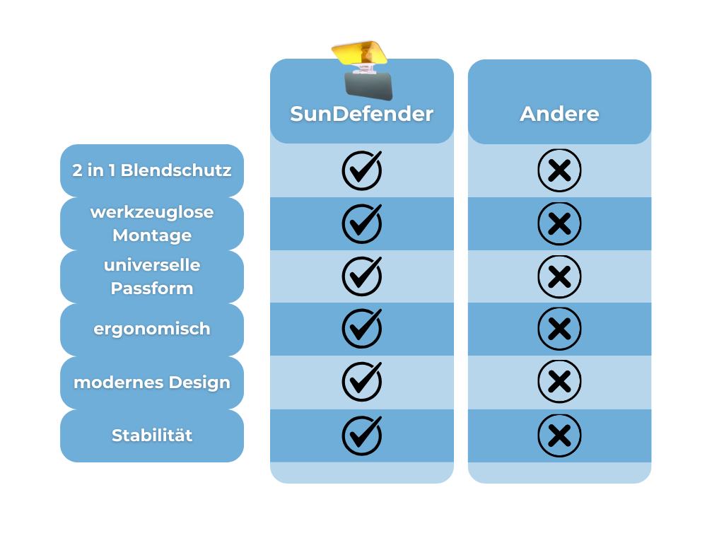 Nicht alle Sonnenblenden sind gleich - hier siehst du, warum der SunDefender die clevere Wahl ist.